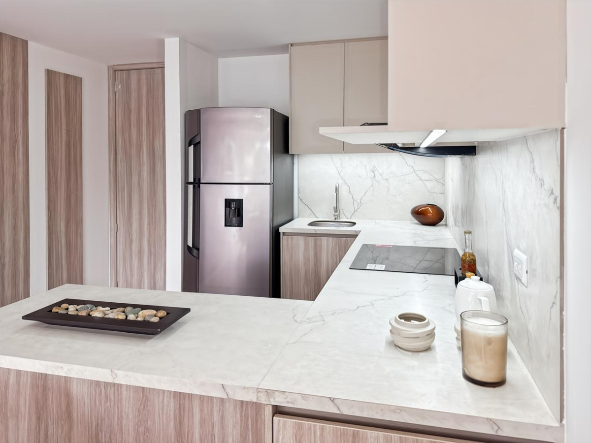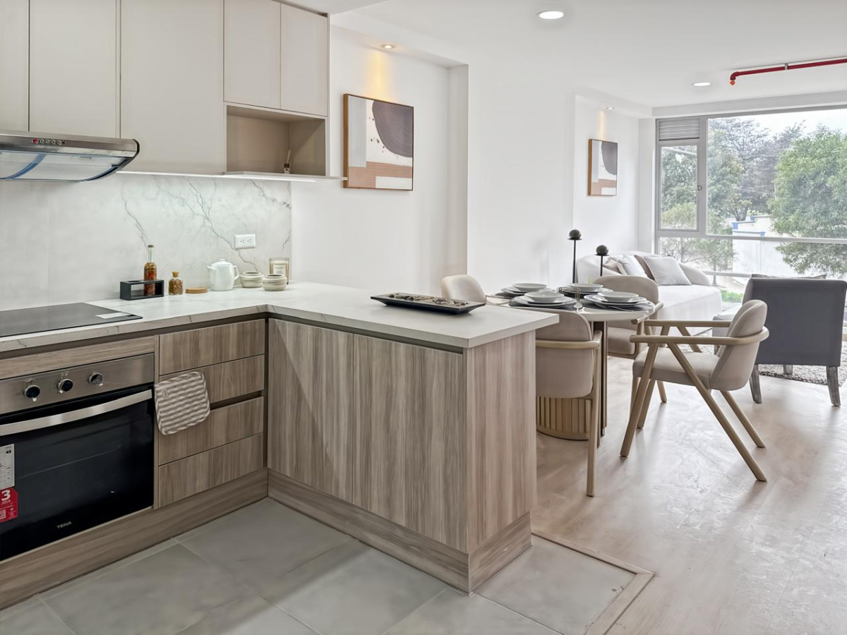 - Sala – comedor con cocina abierta integrada.